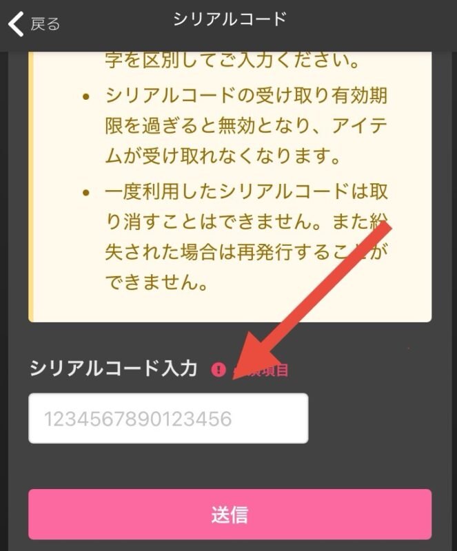 シリアルコードをタップすれば入力画面が出てくるので、あとは間違えずに入力して送信するだけです!