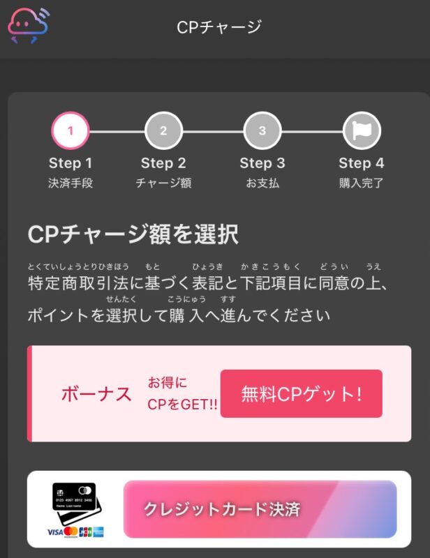 クラウドキャッチャーのポイ活は、アプリ下部の「チャージ」ボタンを押して真ん中付近に表示される赤い「無料CPゲット」のボタン内にたくさん用意されています!