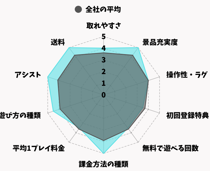 ひと段落ついたところで、他オンクレとどの程度の差があるかもっと分かりやすくするため、全オンラインクレーンゲームの主なサービス内容を比較し、数値化した一覧表を公開しておきます!
