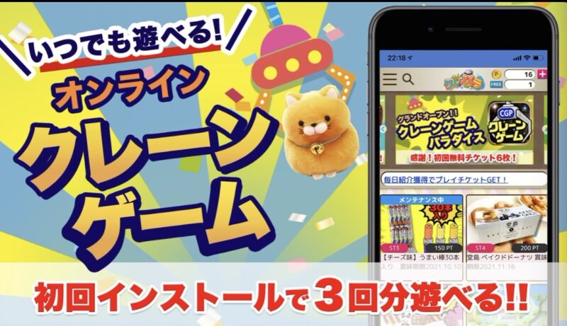 通称クレパラことクレーンゲームパラダイスは、初回特典で無料チケット3枚がもらえます!