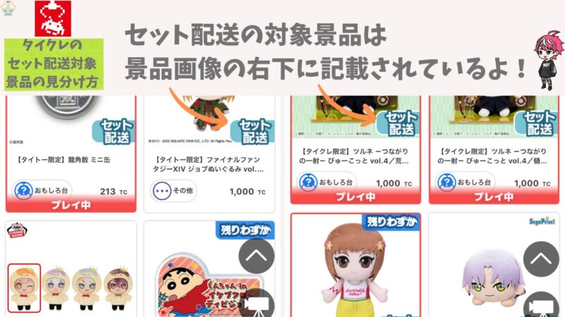 セット配送対象景品は全景品の中ではほんの数%程度なのですが、景品獲得から発送まですべてを無料で完結させたいと思っている方は事前にセット配送の記述がないかだけは忘れずチェックしておきましょう!