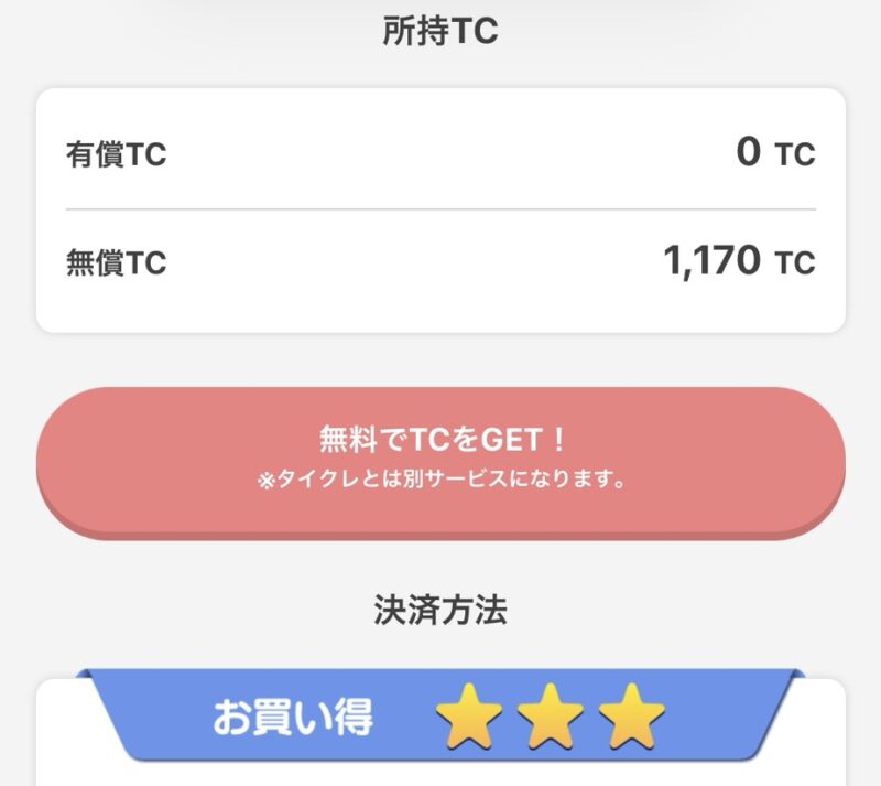 最後はポイ活、いわゆるリワードをこなしてTCを大量に稼いでタイクレを無料プレイする方法です!