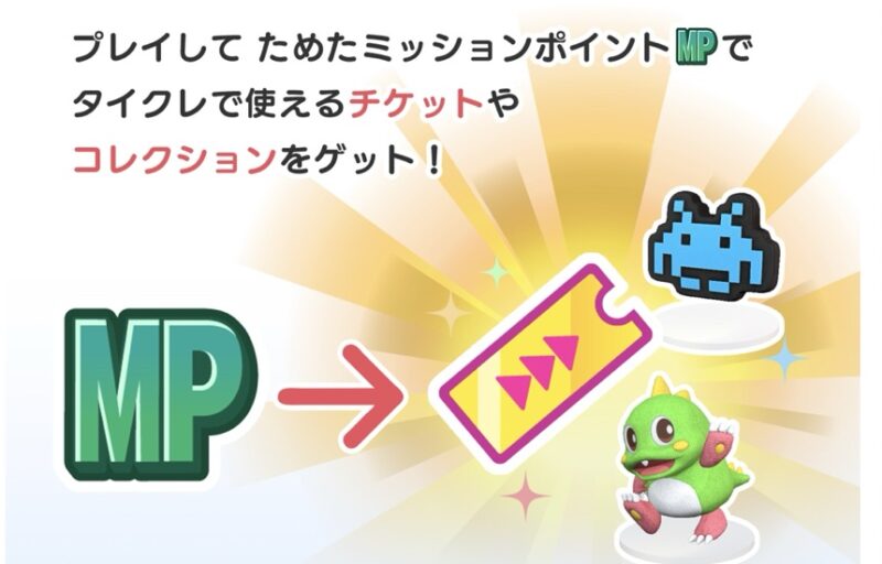 何故ならメダルの増減に関わらず、用意されたミッションをこなしていくだけでMPが付与され、MPを使ってタイクレ内で使えるアイテムと交換可能になっているんですよね!