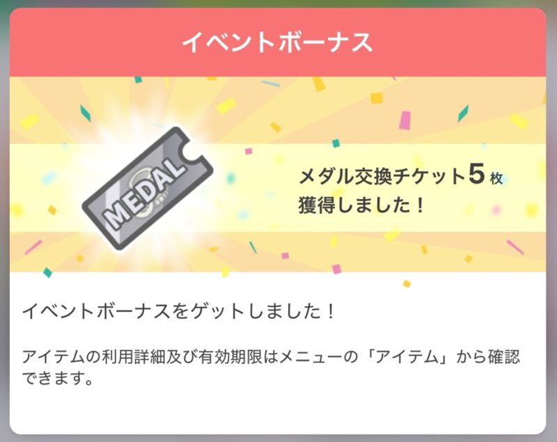 ちなみにメダルゲーム自体はタイクレログイン時にもらえるメダル交換チケットだけでも十分プレイ可能です!